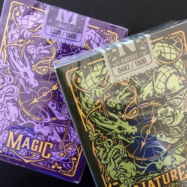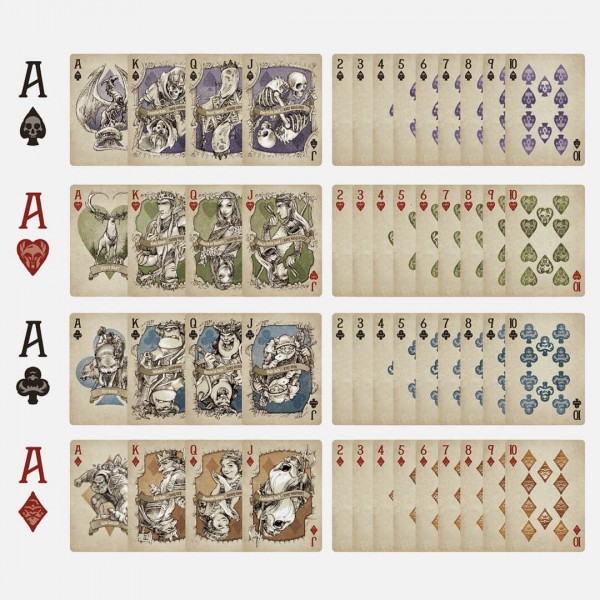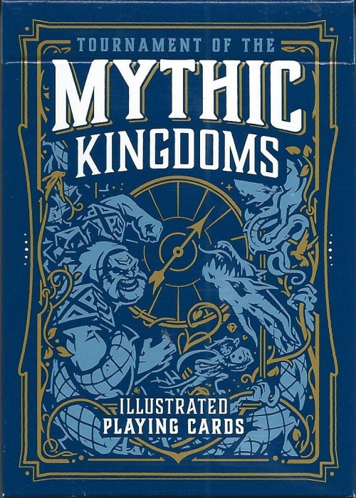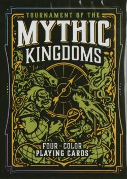 Tournament of the Mythic Kingdoms is a fantasy-themed set of standard playing cards (52 cards + 2 jokers + 2 extra cards) printed by the USPCC on Bicycle's premium grade paper. Illustrated by Greg Swearingen with amazing attention to detail, these cards will add a new layer of fun as you use them to play your favorite traditional card games.