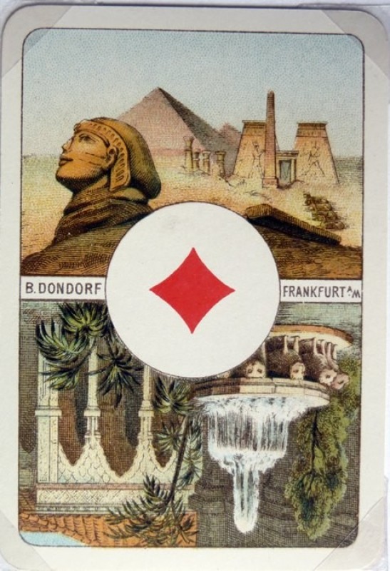 36 card piquet deck printed using chromolithography, with Aces depicting scenes from around the wotld.