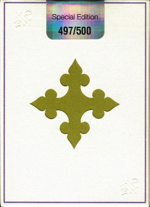 This is the special edition "White Gold" edition of Aurum. Only 500 of these decks are publicly available. The luxurious pearlescent paper shimmers both white and gold depending on the light and features incredibly intricate gold foiling, metallic inks and embossing. Every card is intricately designed and features multiple metallic inks and was also carefully crafted to be "purposefully imperfect."