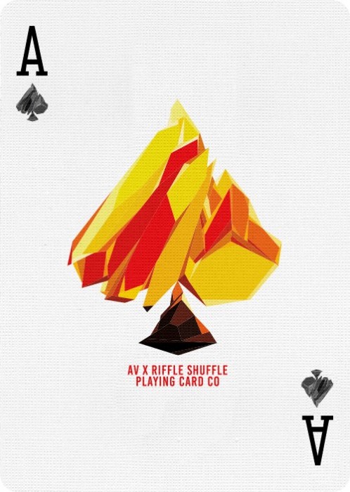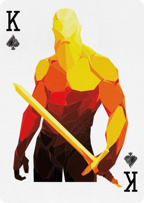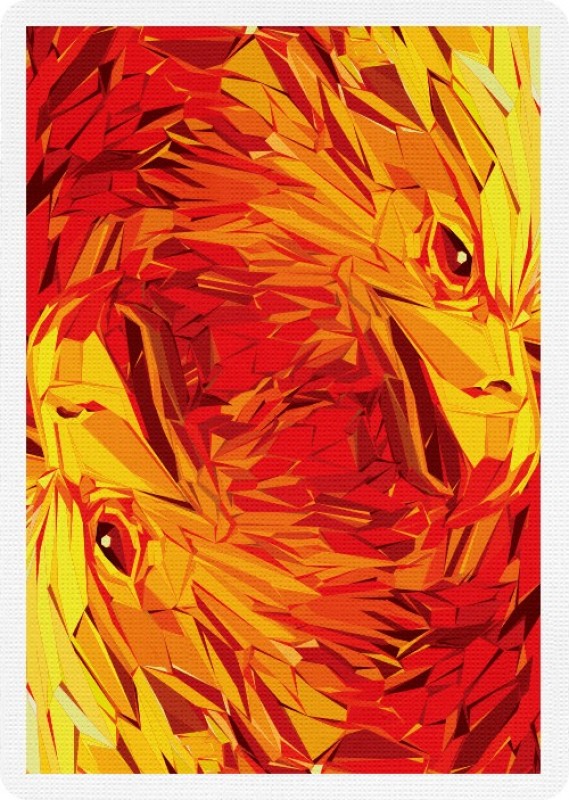 The designer Adrian Valenzuela continues to bring out his masterful illustration by breaking down the feathers of the phoenix into multiple geometric shapes and infusing them to form a majestic image of the Phoenix. One can truly admire the beautiful feathers as you fan or spread the cards as if the phoenix is fiery wings in your hands.