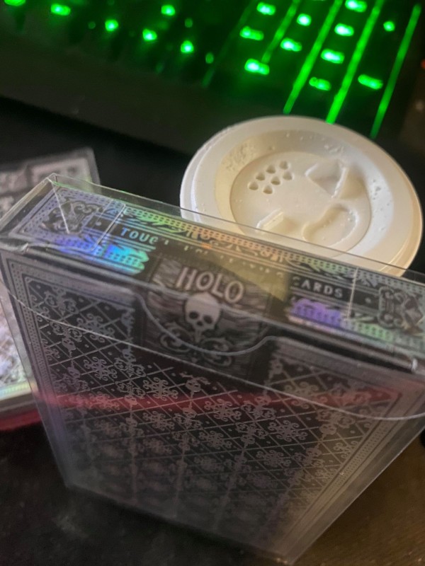 The Holographic Gilded deck has a black seal with the words HOLO across the top of the seal. The tuck also has a more glittery coat over the Tough Luck Logo and the rest of the tuck.