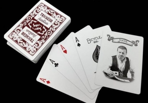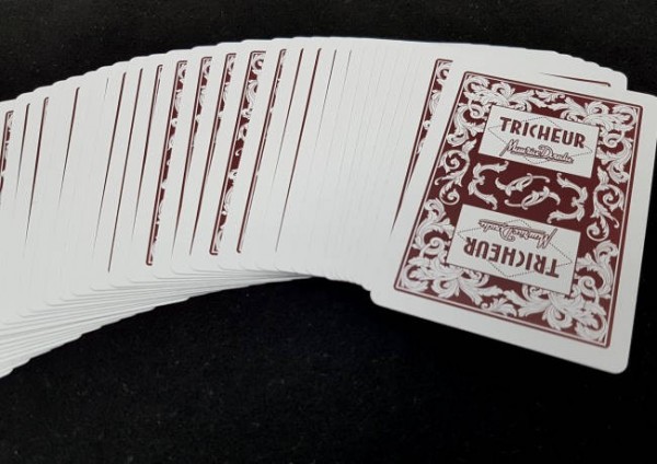 Made for French magician Maurice Douda on the theme of his show Tricheur (Cheater), the deck comes with 14 tutorials and tricks to download taught by himself. Included 2 Blank cards, 2 Custom Joker.