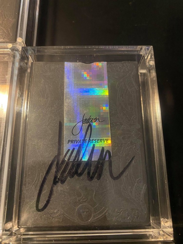 Around 15 known in existence with the Private Reserve seal signed by Jackson. As quoted by Jackson, "When I made the "Private Reserve" decks I did so with the specific intention to give them only to a select few of people that were considered friends or my family. I don't feel good about charging my mother for any of the work I do. I put the 'Private Reserve' seal on a total of about 15 decks."