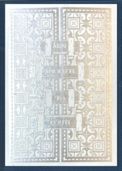The 2020 NPCCD theme is Hindsight based around the tragedies of classic Greek mythology, most notably around Pandora's box and her husband Epimetheus. Features a transforming enclosure that expands the box into a larger temple to display a classic golden frieze on all sides. Sealed across the box is an intaglio gold engraved warning to not open Pandora's box. The Disease Deck has a Gold on Green tuck box and Gold Gilding.