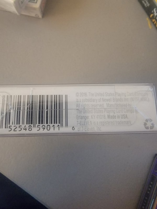 This deck is unlike others similar to it as it has a "UP TO $4 In Savings Inside" coupon inside as advertised on the yellow sticker on the Tuck Box. This deck was produced in 2018.
