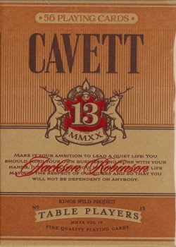 Jackson Robinson of Kings Wild Project continues the Table Players series with this, Volume 9 "Silver Cross." Printed by EPCC, this deck continues the theme of vintage tobacco and cigarette packaging. The Table Players debuted as a bi-monthly playing card subscription in January of 2020 designed to bring together the functionality and simplicity of a deck of table playing cards with the beautiful and unique artwork of high-end collecting cards. Each Table Players deck featured its own beautiful, custom colored Kings Wild Standard Court Cards for easy table play.