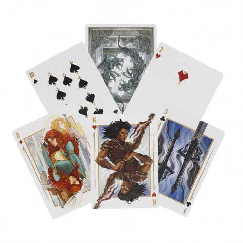 Beautiful deck with gorgeous illustrations of characters from Brandon Sanderson's Stormlight Archive. Includes gold metallic ink.