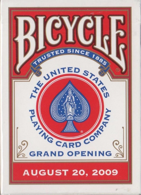 Bicycle Grand Opening deck is one of the rarest decks produced by the USPCC ever. These cards were handed out at the ceremony celebrating the grand opening of the new USPCC plant on August 20th, 2009.