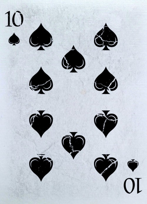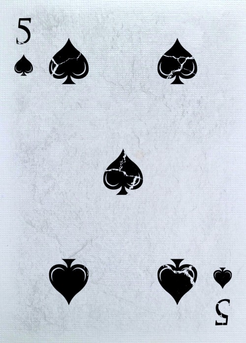 This deck is printed with a unique soft non-gloss finish showcasing the design below along with a shimmering silver foil that showcases the cracks and repairs of the deck. The cards inside feature an animated blooming back design that when flipped will show the logo flowering and closing with the different seasons. The deck gilding is made to match the tuck. The two piece Jokers showcase a piece of the card falling off with the repair paint revealing a ‘J’ to complete the Joker titling. The AoS follows similar in suit with a “broken” face revealing the spade shape with a custom pattern to match the back design and the ‘Experimental Series’ tag below.