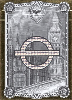 Presenting the second in the Diffractor City Series, VXD Gaming brings you the London Diffractor. Designed by VXD Gaming and Lance T Miller and produced by Vrijdag Premium Printing, the London Diffractor decks use the patented printing technology developed by VXD Gaming (US. Patent. No. 8,777,225), which combines a standard layer of ink printing, as found on normal playing cards, with an additional hot-stamped layer of transparent holographics, of the type typically only found on passports and other ID documents. This combination produces an entirely unique look within the playing cards industry and presents new possibilities for design expression and sets a new bar for luxuriousness. The result is a mesmerizing combination of holographics and ink, lighting up at different angles and in different lighting conditions and producing a combined artwork which tells a story of the heritage of London.