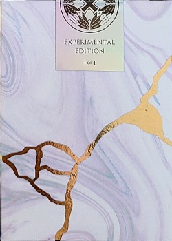 This deck is printed with a unique soft non-gloss finish showcasing the design below along with a shimmering gold foil that showcases the cracks and repairs of the deck. The cards inside feature an animated blooming back design that when flipped will show the logo flowering and closing with the different seasons. The deck gilding is made to match the tuck. The two piece Jokers showcase a piece of the card falling off with the repair paint revealing a ‘J’ to complete the Joker titling. The AoS follows similar in suit with a “broken” face revealing the spade shape with a custom pattern to match the back design and the ‘Experimental Series’ tag below.