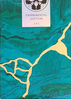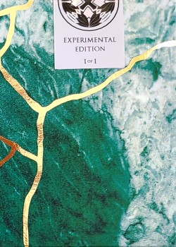 This deck is printed with a unique soft non-gloss finish showcasing the design below along with a shimmering gold foil that showcases the cracks and repairs of the deck. The cards inside feature an animated blooming back design that when flipped will show the logo flowering and closing with the different seasons. The deck gilding is made to match the tuck. The two piece Jokers showcase a piece of the card falling off with the repair paint revealing a ‘J’ to complete the Joker titling. The AoS follows similar in suit with a “broken” face revealing the spade shape with a custom pattern to match the back design and the ‘Experimental Series’ tag below.