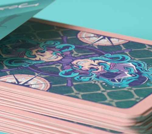 The number cards are now two-way and features different aquatic animals to make the cards easier to play with. The Aces features large central pips. The Jokers: The stars of the deck feature the image responsible for bringing these cards to life! The court cards feature 4 unique and creative King, Queen and Jack designs.
