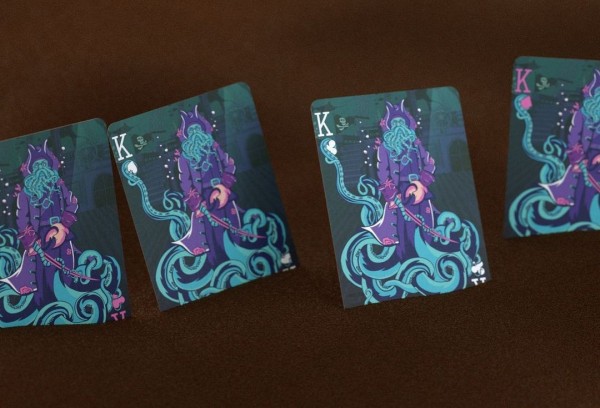 What began as a cool design with vibrant colors for a t-shirt somehow took on a life of its own and evolved into a full deck of playing cards! What's even cooler about this deck is that it was designed with the help of two awesome communities, r/Octopus and r/Pirates on Reddit. The skull and his eight tentacled friend (Bert...lets just call him Bert) was so well received in these communities that together we created Dark Tides.