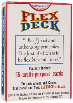 We believe that house rules are official rules. By that, we mean you pick how you play the Flex Deck. Mix classic systems of fun with double-nine dominoes, word games and traditional card indices, all in one.