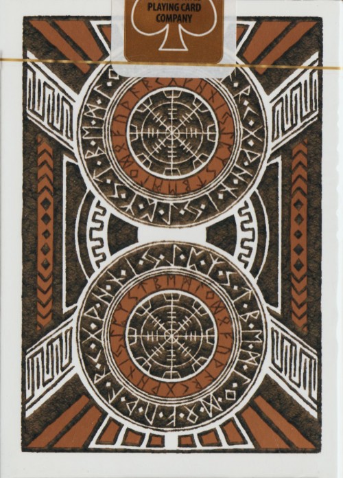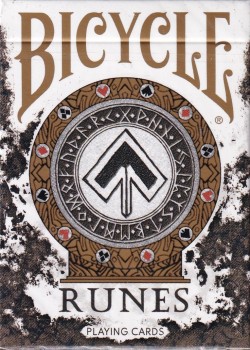 A completely custom deck of playing cards based on the Elder Futhark, the oldest runic alphabet from Germanic & Nordic tribes. You will find a total of 24 runic letters used on the number & court cards. The runes on the aces spell out the corresponding suit and the jokers feature a decorative octagram. The main feature of the back design is based on the famous rune circles. A double back & informational card are also included.
