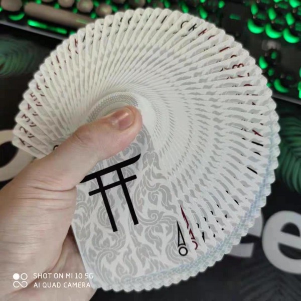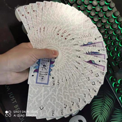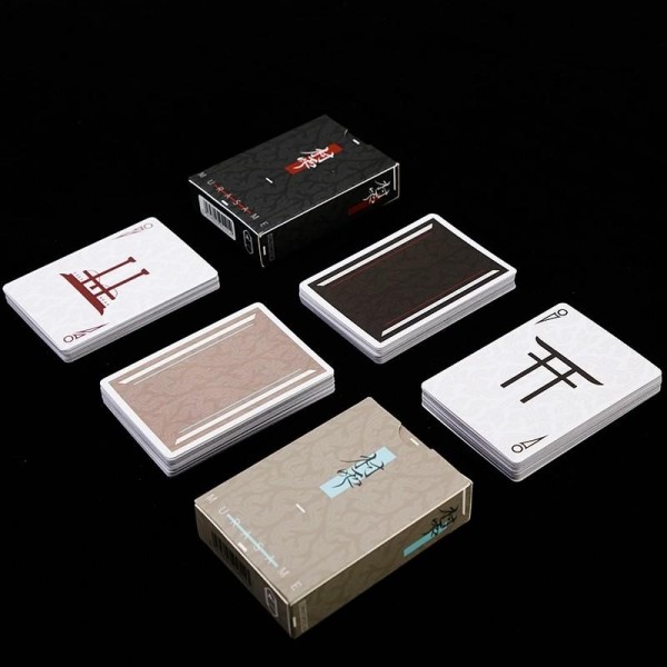 Translation note: 镇尺 literally translates as "town ruler" however it actually means an antiquated paper weight that ancient scholars used. 村雨, Murasame, also 村雨丹, literally "village rain", though often translated as "autumn rain", refers to a type of rain that falls hard, then gently, in fits and starts. In Japanese poetic tradition, it is particularly associated with the cold rains of autumn. This series was designed by WohStudio and printed by KSPCC. It is not a King Star deck, just like Bicycle & USPCC, King Star has it's own design team that creates King Star branded decks, and it's own printing factory KSPCC for its bread and butter. Inspired by Akame ga Kill!, a Japanese manga, which was in turn inspired by Nansō Satomi Hakkenden, an ancient text.