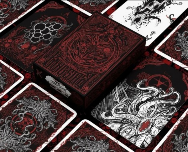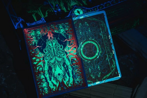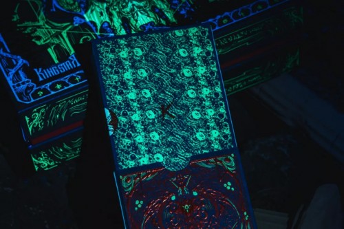 It is foretold that, that which has risen will sink, and that which has sunk will rise. It descended from among the stars to earth, and the stars will eventually return to their rightful place. The abomination is waiting for the dreamscape in the deep abyss. Decay spreads in universe, as it is devoured by the darkness. That moment has arrived. Glimpse of Blood Mirror Hidden deck is only found in the boxset, not sold separately. Printed by KSPCC, using 310G German black core paper, limited edition of 1288. The double-layer tuck box is embossed, and completely covered with gold foil and green invisible ultraviolet ink technology. Dark red bronzing foil is used on the face and back of the cards, and both sides are covered with green invisible ultraviolet ink technology as well.
