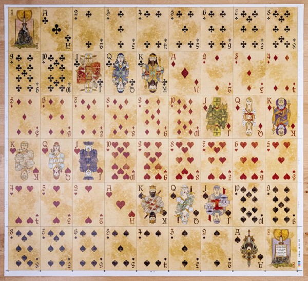 The Arthurian Excalibur Edition is a limited edition set of hand-illustrated medieval playing cards celebrating the story and legend of King Arthur and many characters that have surrounded his court for hundreds of years. This medieval playing card deck is illustrated in the style of The Book of Kells that is believed to have originated in the same geographical area around the same time as the legend of King Arthur.