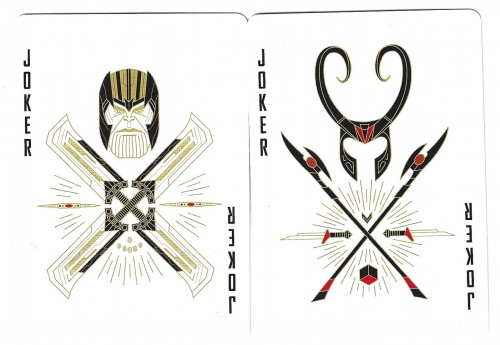 Inside the box, even the Aces feature callbacks to characters like Doctor Strange, Vision, Winter Soldier, and Gamora. And this wouldn't be an Infinity Saga deck without a little bit of mischief and balance: Loki and Thanos make their presence known on each Joker!
