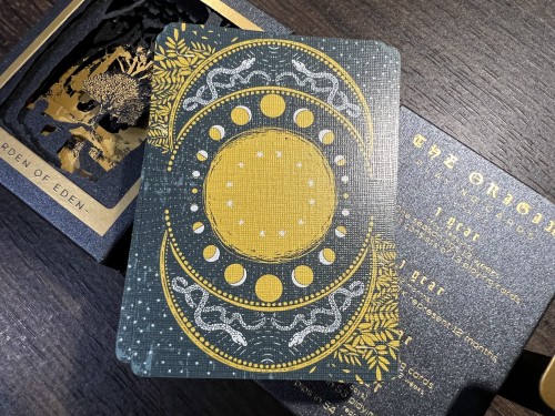 The Collector Edition is the soul of "The Origin." It inherited the Olympians tuck case design, the book-style that holds stories through art. When you open it, you will be welcomed with a striking 3D multi-layer cuts frame that replicates the scenes of "Genesis" and reveals the secret story. The deck is printed in moderated metallic inks to replicate oil ink painting and finished with Rainbow Silver Gilding. Each element and illustration has a meaning, truly breathing life into the artwork. The whole deck tells the "Genesis" story based on Austin's imaginary world. Printed in-house TOPCC.