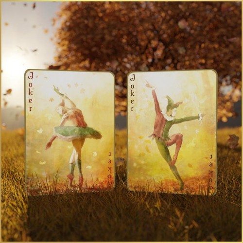 Each card has been meticulously hand-drawn by the artist, taking inspiration from ballet, and then entwining it with nature. The face cards have tried to capture the splendor of Autumn when everything turns scarlet and gold. Each dancer is coupled with the grace of an animal or bird symbolizing the symbiosis between the soul and nature’s spirit.