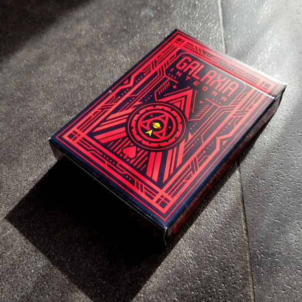 Integra is a rarer, alternative version of Galaxia Domina, with a simple tuck box printed with an aggressive black and red design.