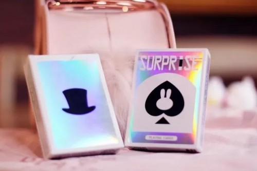 BPCC Surprise Deck V4 (White Rabbit), by Bacon Playing Card Company. Features laser holographic tuck box, designed by magician Huang Xiaoshuai, who was former tutor to the Taiwanese singer Jay Chou. Made in Taiwan. Created specifically for Cardistry, Cardists, magic tricks.