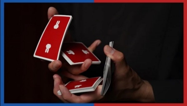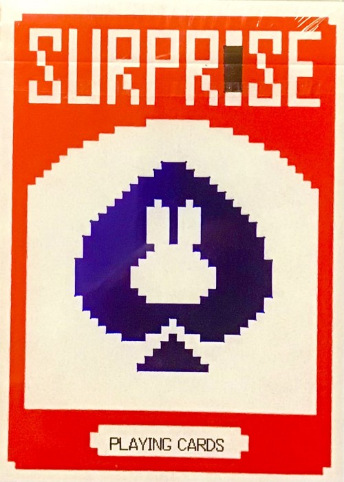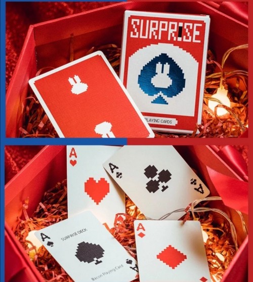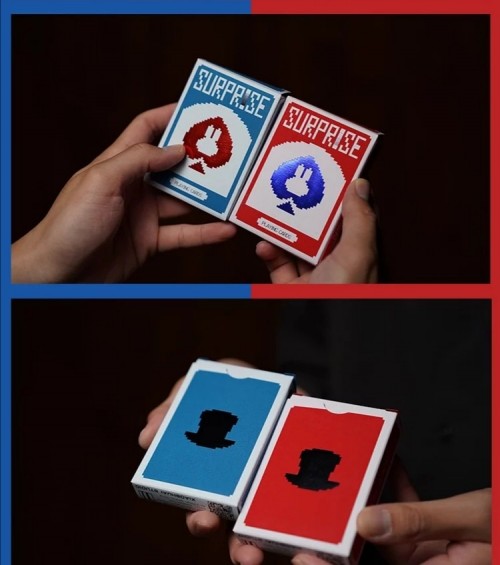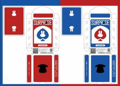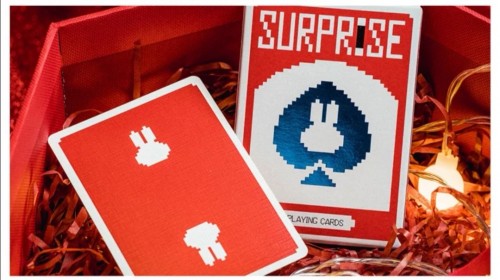 BPCC Surprise deck, V5 Blue Rabbit (Red tuck, Red back), by Bacon Playing Card Company. Made in Taiwan, specifically for Cardistry, Cardists, Made in Taiwan, specifically for Cardistry, Cardists, magic tricks.