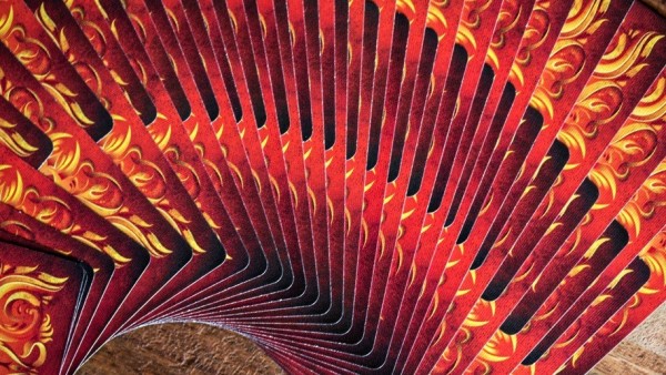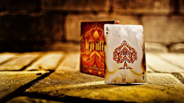 V1 shows text in tuck opening cutout space on back. V2 shows solid orange with no text in cutout space on back.Ignite has been carefully matched with the design and tones of Fathom to create dramatic contrast in color changes and flourishes. Get your Bricks Now. The second release in the Origin Series, Ignite Playing Cards captures golden flames, glowing embers and the smouldering black char of a scorching inferno. From the blazing ace of spades on the front of the box, to the world of flames on the back, there is no mistaking the theme of this deck. Featuring line-art embellished pips, court cards colored in the orange glow of a dying hearth, and polarized jokers, reds and blacks in contrast, for a color-change illustrating the very name of the deck; Ignite. Conjure the spirit of fire and set your performances alight.