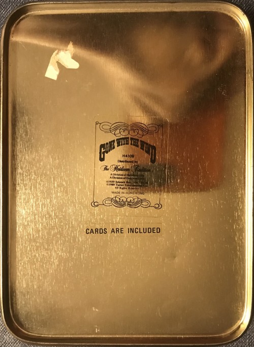 A collectible tin with a double deck featuring Rhett Butler and Scarlet O’Hara