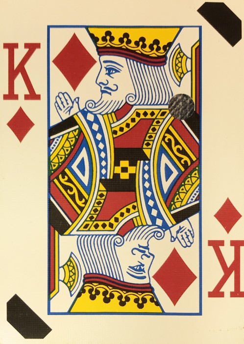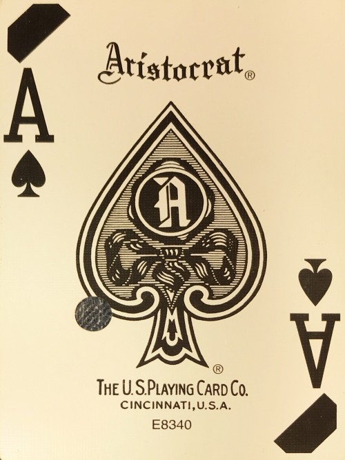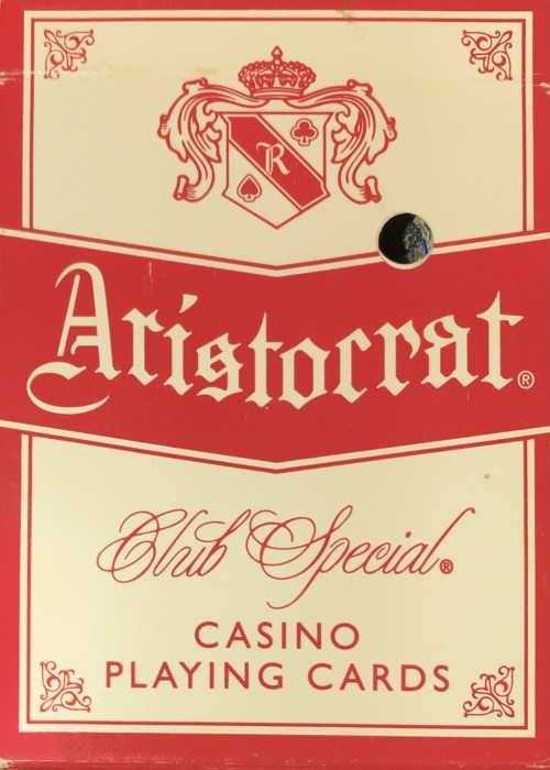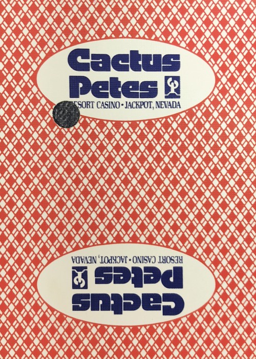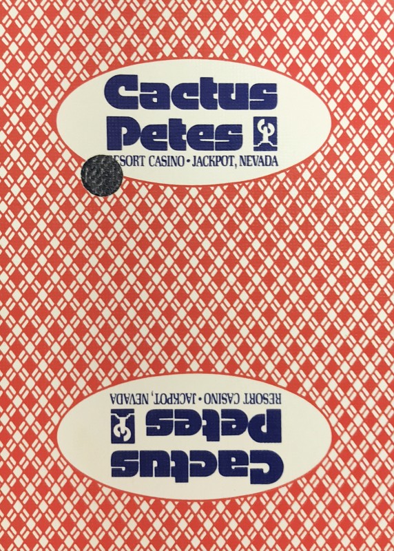 Aristocrat deck used at Cactus Pete’s Resort Casino in Jackpot, Nevada. Dealer dated 2/2014 and hole punched deck.