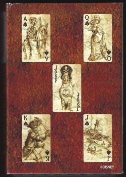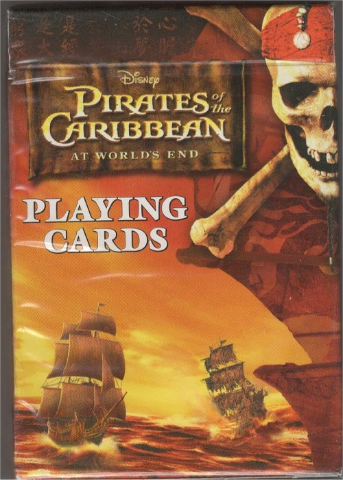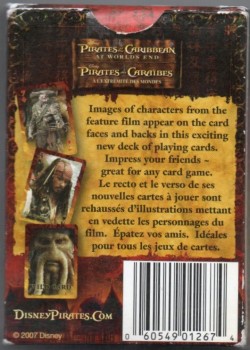 Mini deck of Pirates of the Caribbean cards with all the cards having a design. The pips/numbers (Hearts / Diamonds) are all the same and the (CLubs/Spades) are the same but different from the others. The court cards depict characters form the movie.