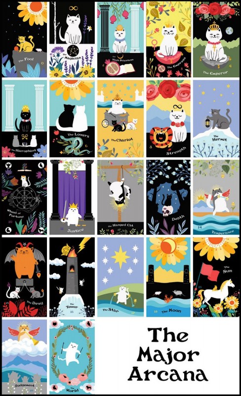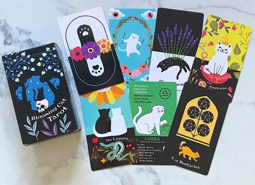 https://www.kickstarter.com/projects/bloomingcattarot/blooming-cat-tarot-second-printing https://www.cosmiceye.org/product-page/blooming-cat-tarot-deck Blooming Cat Tarot is a 78-card cat and flower themed tarot deck (plus the 12 astrological cards) based on the classic Rider-Waite-Smith deck and includes much of its rich symbolism. The cards are standard tarot size, 2.75x4.75, and will be printed on heavy 350gsm cardstock with a smooth semi-gloss finish. They will come in a tuckbox with a booklet of card meanings.