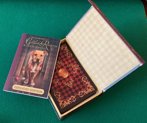 Gilded Reverie Lenormand showcases the digital talents of Ciro Marchetti with captivating imagery on 47 gilt-edge cards.This Expanded Edition deck features eight special supplemental cards, including four that have not been previously published.The extra cards are: Time, Bridges, Dice, Mask, Well, Compass, Labyrinth, and Magnifying Glass. For this deck Ciro also provides an extra Man, Lady, and Owl card to enhance Lenormand readings.The 80-page guidebook provides expert instruction by Lee Bursten, Donnaleigh de LaRose and others for reading with this 47-card deck.
