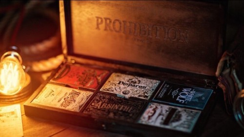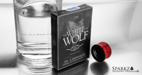 WhiteWolf - Premium Vodka that lends itself to design as stark and crisp as the Russian Tundra. Lead designer Mike Clarke took a very different angle with this deck, giving it a modern, minimalist twist. Sporting half-shaded pips and single-line drawing courts, these cards capture the purity of fine vodka itself. A speckled paper overprint on thin cotton stock give match a truly luxury feel with an otherwise austere composition. Although the brand WhiteWolf was created just for these cards, we truly believe that its magic should be bottled. This deck looks like it was created to be sold with bottles of WhiteWolf Vodka, the one deck in the Prohibition Series that comes across as commercial design. If you like the simplicity of the Madison Rounders back design, you are going to love these. WhiteWolf is available exclusively in the Prohibition Box Set.