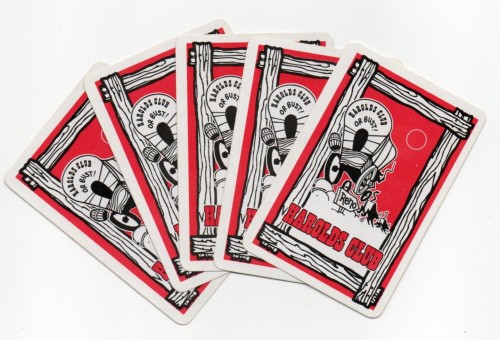 Pre 1995 Harold's Club, also spelled Harolds Club, was a casino in Downtown Reno, Nevada that was established in 1935. The casino closed in 1995 and the building was demolished in 1999. Harold's Club casino was established in 1935 by Harold S. Smith Sr. (1910-1985) and his brother, Raymond A. Smith. Soon afterwards, their father, Raymond I. ("Pappy") Smith (1887-1967), was appointed general manager and became the public face of the casino. The casino expanded by buying adjacent Virginia Street properties. Harold's Club constructed a seven-story building as part of the casino, but never had a hotel on the property. Pappy Smith developed a marketing campaign that made the casino famous, using more than two thousand billboards across the United States advertising "Harold's Club or Bust", often written on a Conestoga wagon.(By the 1970s, most of the billboards had been taken down because of the Highway Beautification Act.) Harold's Club was sold to Howard Hughes' Summa Corporation in 1970 for $11.5 million. In December 1994, the casino was sold to Gamma International Ltd. and closed three months later. The casino was then sold to Harrah's Reno in 1999 and demolished. The property is now an outdoor plaza for concerts and special events. The casino building had an American Bandstand restaurant and nightclub for 8 years during the 1990s. Harold's Club was the target of a casino heist in the 1955 feature film 5 Against the House. A large 70 by 35 foot mural of Old West pioneer settlers that was displayed in front of the casino is now on display at the Reno Livestock Events Center, about 2 miles from the old casino location. The mural was designed by Theodore McFallon and constructed by Sargent Claude Johnson.