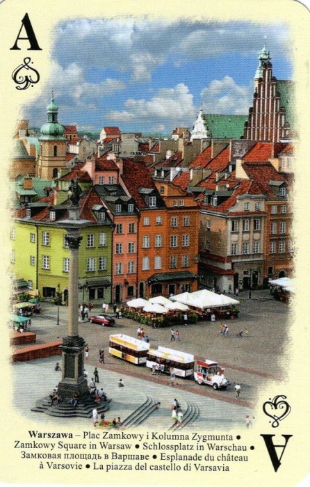 2 decks of 55 playing cards with pictures of 110 Polish places.
