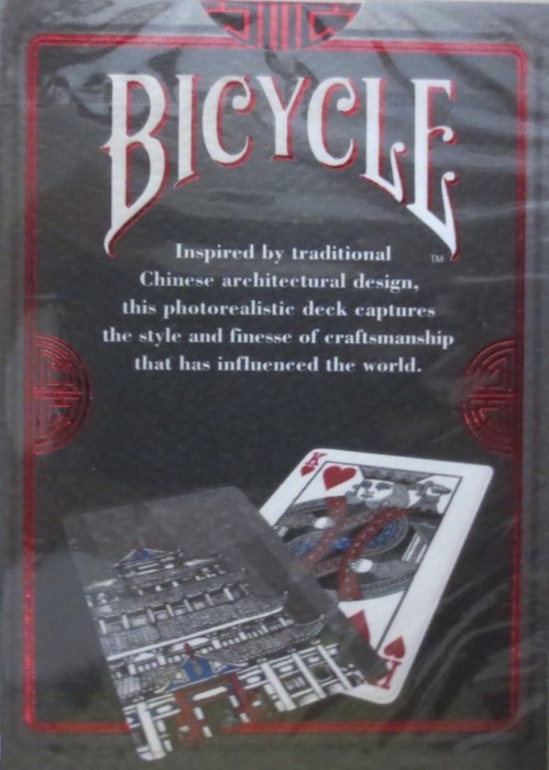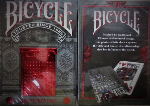 This photorealistic deck combines key artistic elements of stone masonry and carpentry inspired by traditional and iconic Chinese architecture. Following Feng Shui principles, the red door invites Bicycle enthusiasts inside to experience this unique deck that honors the symmetry of design, the intricacy of the stone work, and the beauty of construction that has been perfected over centuries. Vibrant red foil paired with sculpted embossing and debossing highlight the depth and complexity of architectural detail on the tuck case. Felt vellum paper tuck case stock, to mimic the texture of weathered stonework. Back of the cards shimmer with 3 different metallic silver inks.