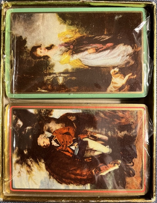 Double deck box with French paintings. Each deck is wrapped in cellophane and includes the tax sticker on each deck.