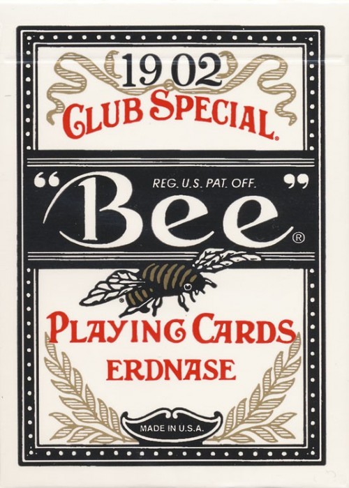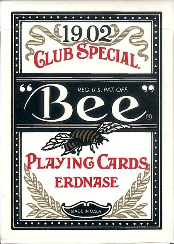 Conjuring Arts is very proud to release our first decks of Erdnase 1902 brand cards. These commemorative decks designed by Guy Hollingworth (with additional face artwork by Dan White) are printed on exclusive Bee Casino 825 paper and are made with a special coating to ensure the best handling. They’ve been cut the same way as Richard Turner has his cut so they faro and shuffle extremely well. We are now releasing the first design and color in what will be a series. It is the Black Smith Back named in honor of Marshall D. Smith the illustrator of The Expert at the Card Table. The overall Bee like pattern is actually made up of tiny reproductions of the hands in the illustrations of the great card classic. These decks also use the original faces that were used by U.S. Playing Card Co. in 1902. These great faces have somewhat larger pips and somewhat smaller indices which combine to create an unusually attractive face. A Conjuring Arts representative supervised all aspects of the production of these cards including being personally at the factory at the time of printing the backs, embossing, crushing and the final cutting and casing.