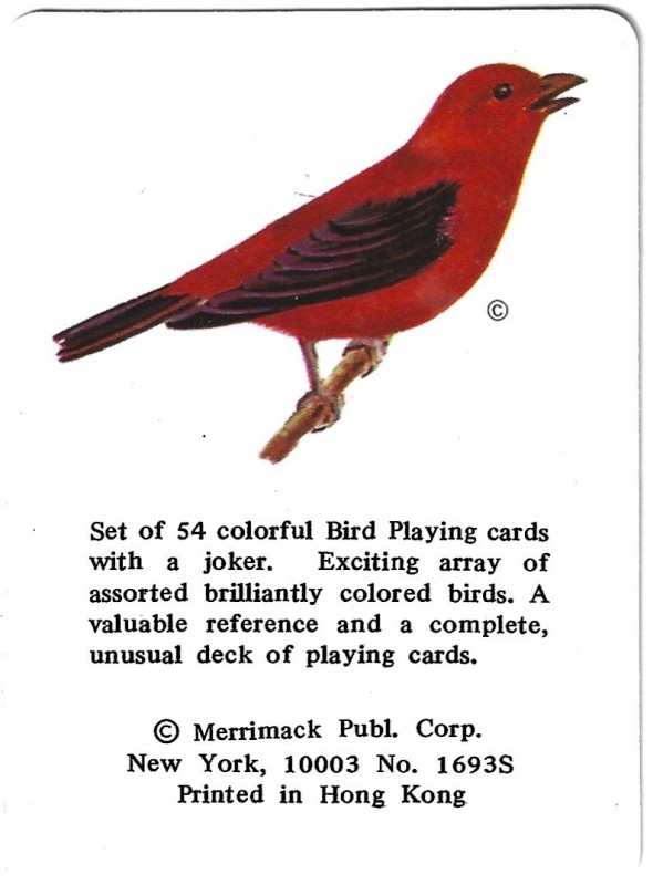 Bird playing cards. Complete deck, colourfully illustrated, made in Hong Kong, 52 cards plus 1 joker plus 1 text card. NO 1693S