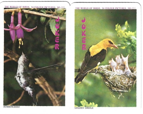 Poor quality deck of cards featuring 54 colour images of birds.