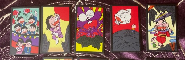 The author, Fujio Akatsuka, is known as "the father of comedy manga", having created also several other series, such as Himitsu no Akko-chan ("Akko of Secrets"), and Osomatsu-kun ("Young Osomatsu"), all very popular in Japan, whose personages in fact appear in some of the cards of this deck.
