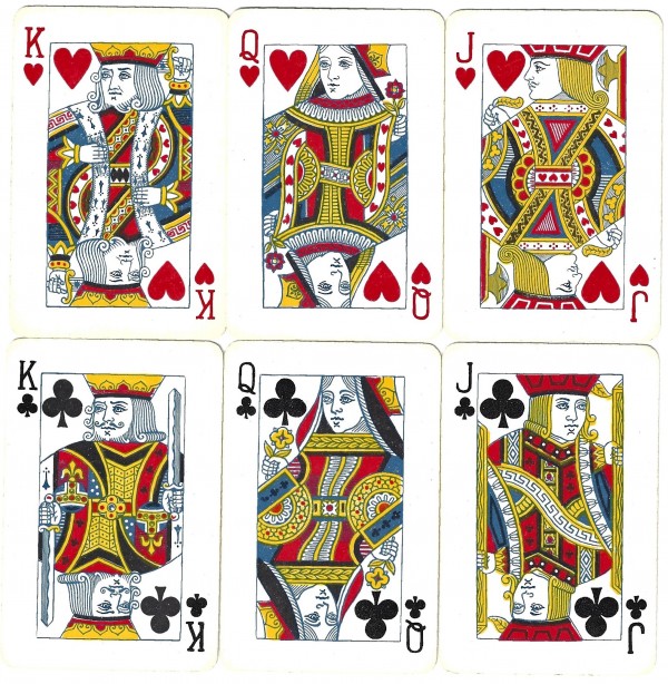 A deck produced between 1962 and 1971 by the company formed by Waddingtons and De La Rue: The Amalgamated Playing Card Co. The 2 jokers are of the De La Rue design.