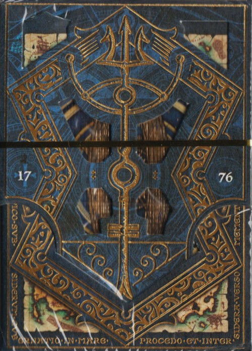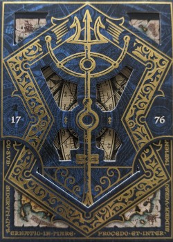 The Solis deck features an Ocean Blue colour with gold hot foil on the tuck and gold foil on the backs of the cards. During the Kickstarter campaign, there was option to upgrade the Solis deck to a blue gilding to match the colour of the deck