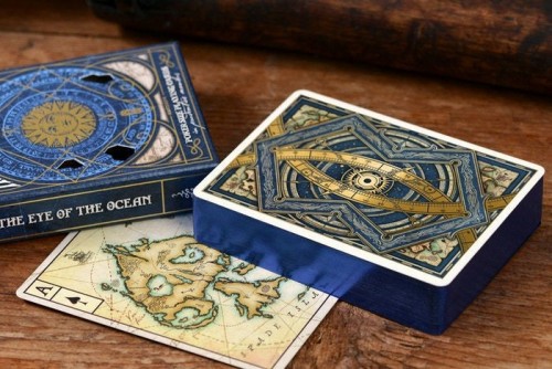 The cards that play the role of jokers are illustrations related to the novel. There is an extra card for Solis and Lunæ which printed with letterpress on cotton paper; this is necessary for the puzzle.https://www.kickstarter.com/projects/requiemcards/the-eye-of-the-ocean/description