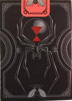 MASTER SERIES - "Grandmasters by De'vo - Black Widow Spider Edition" is an AMAZING Black version of De'vo's famous Grandmasters deck which introduced "Princess Court Cards" that adds bonus features. AVAILABLE ONLY FOR 14 DAYS ONLY! This very special black version features all black face cards, a drop dead gorgeous back design which creates stunning fans, custom pips, and custom court cards.