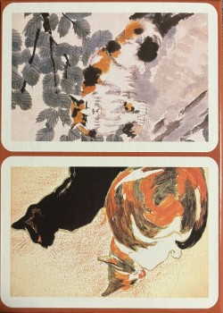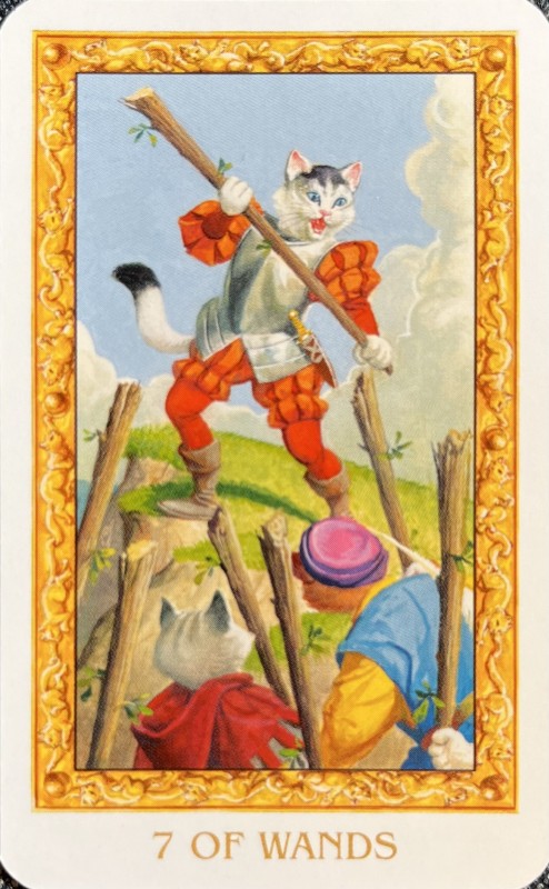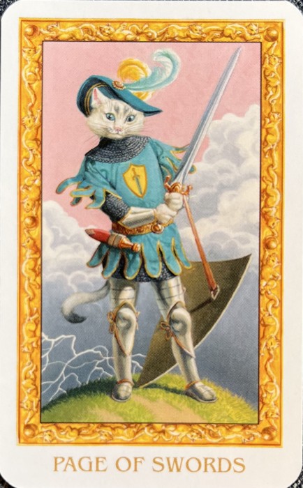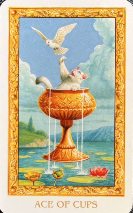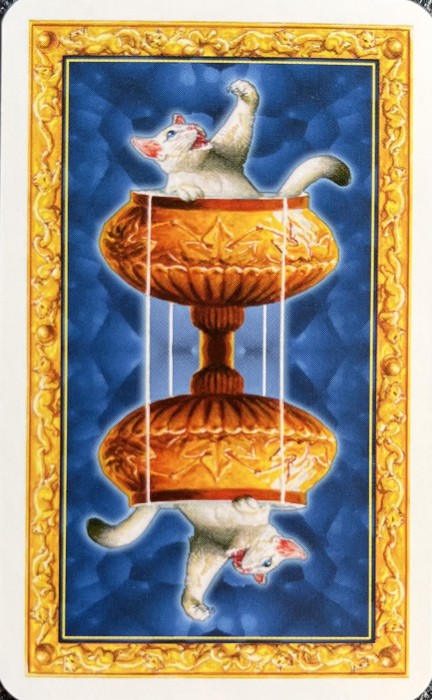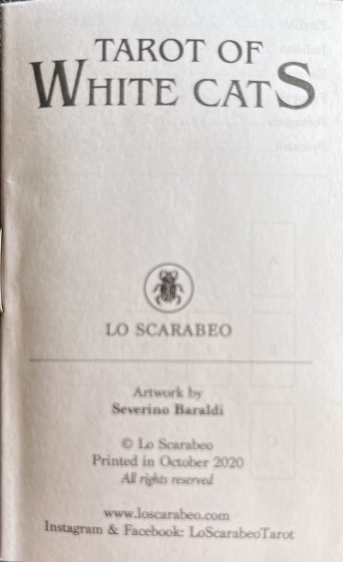 Mini Tarot deck (2” x 3 1/8”) featuring white cats. Includes 78 tarot cards with instructions.