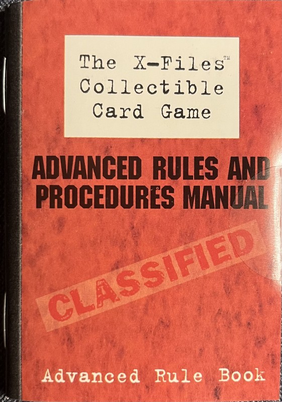A card game (starter deck) featuring the TV show, The X-Files. Includes two instruction booklets. Additional booster packs sold separately.